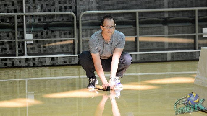 Затем Марек Прокеш приступил к проверке игрового зала на соответствие нормам регламента, особое внимание уделив измерению его параметров – длины, ширины, высоты зала, освещенности площадки – были проверены показатели в девяти точках каждой из сторон площадки. Обратил супервайзер внимание на ряд моментов по оформлению зала, в частности, рекламных баннеров. Также была проверена система электронного протокола и работа беспроводной связи, в частности, раций что также является важным моментом при организации матча.