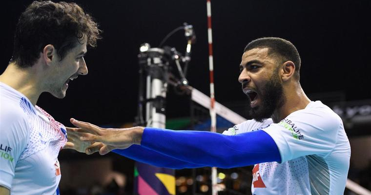 У першому півфіналі французи програвали Словенії 0:2 за партіями і 3:7 в третьому сеті, однак створили неймовірний камбек. Серія блоків дозволила команді Лорана Тіллі відігратися (10:10), а потім діагональний Жан Патрі видав затяжну серію подач з трьома ейсами і перехідним м'ячем - 16:10. У підсумку французи взяли сет з рахунком 25:14. У четвертому сеті французи знову домінували на блоці (8-2). На тай-брейку все вирішила серія подач зв’язуючого збірної Франції Антуана Бризара, який зробив три ейси поспіль (4:3 - 7:3).